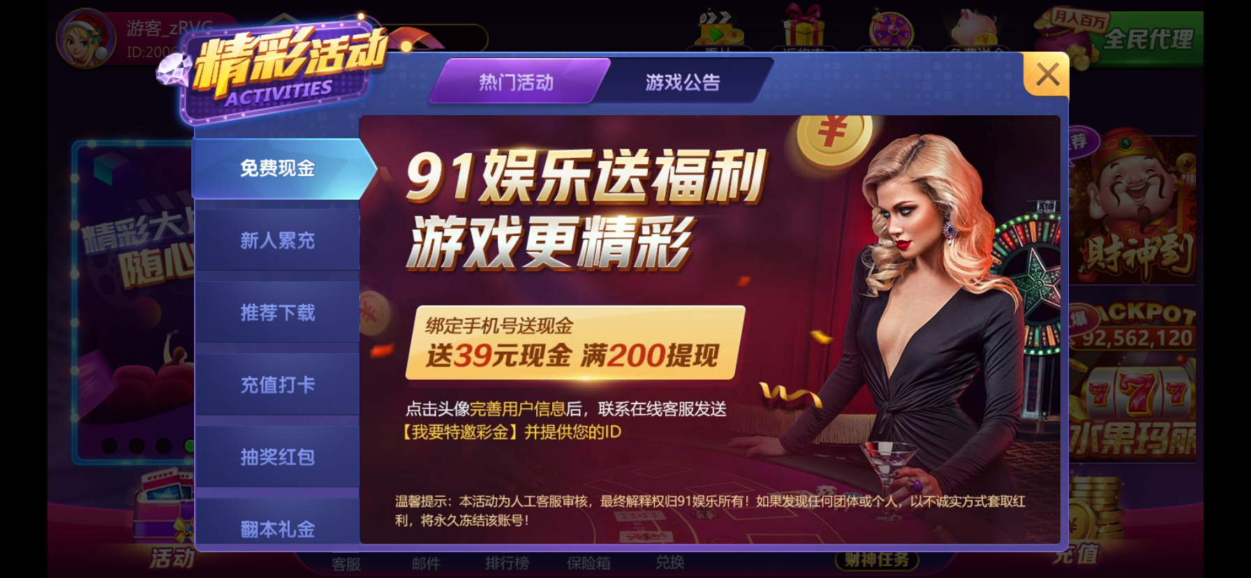 注册好绑定银行卡找客服直接发id说我要特邀彩金我没收到特邀就送了人少送的成功率高没有游戏限制