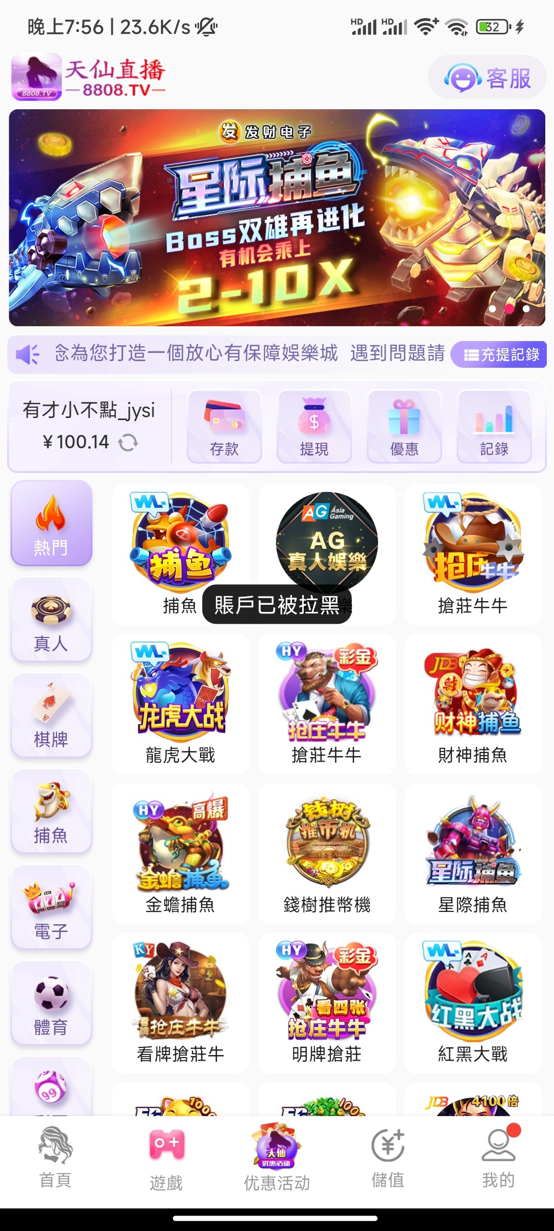 避雷天仙直播 打了电话说送彩金才下载回来的 客服说未充值不赠送 自己冲了五十打到了一百提现 直接拉黑账户