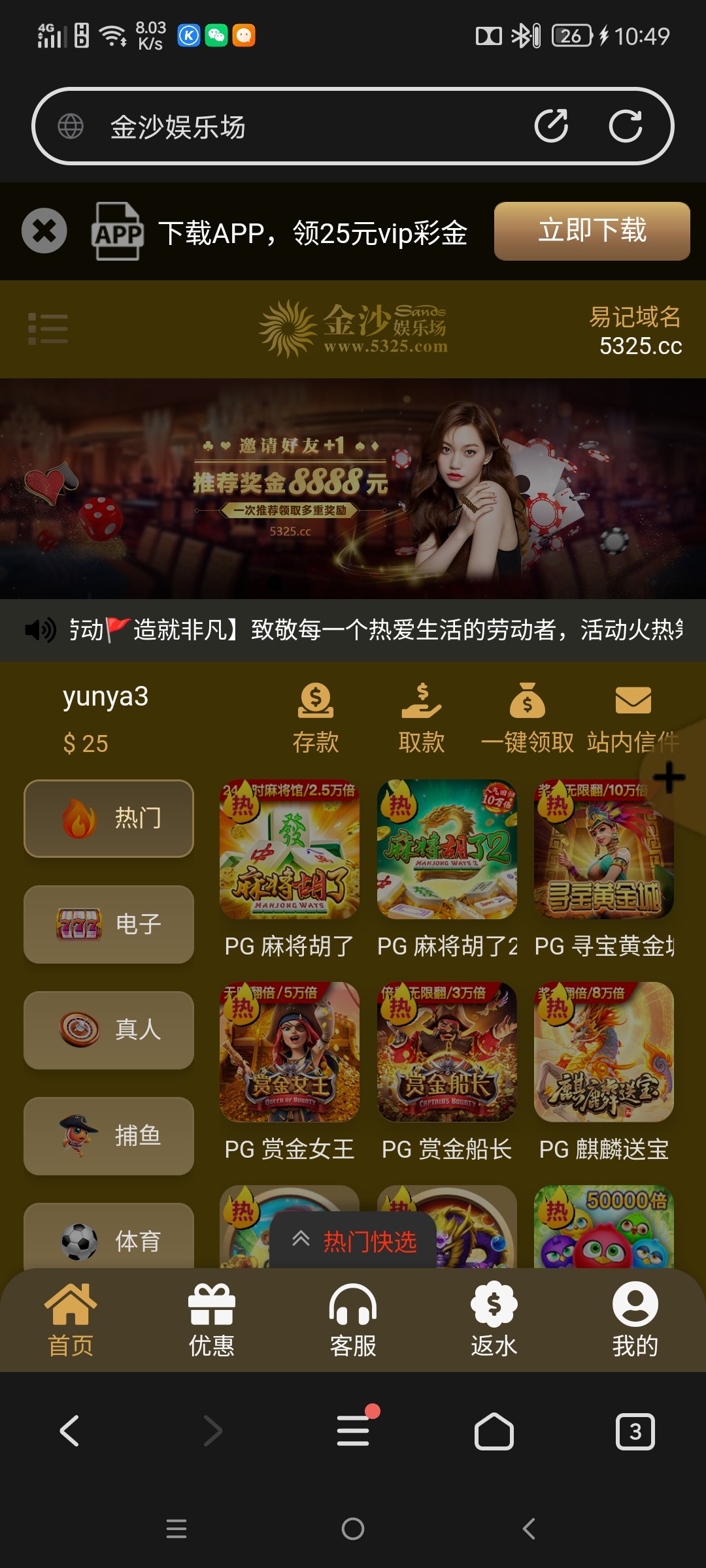 手机号码有特邀能秒25,提款好像没啥限制,100流水就提了