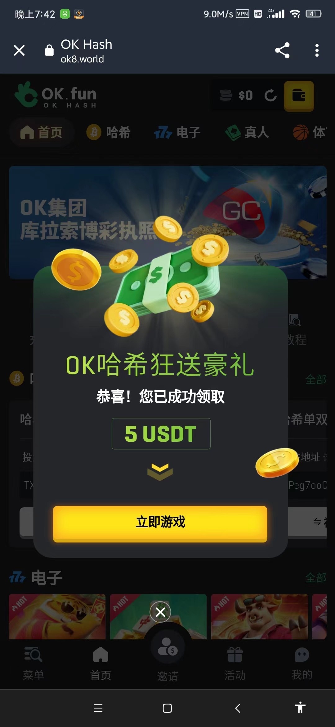 【OK哈希】—✅—送5USDT