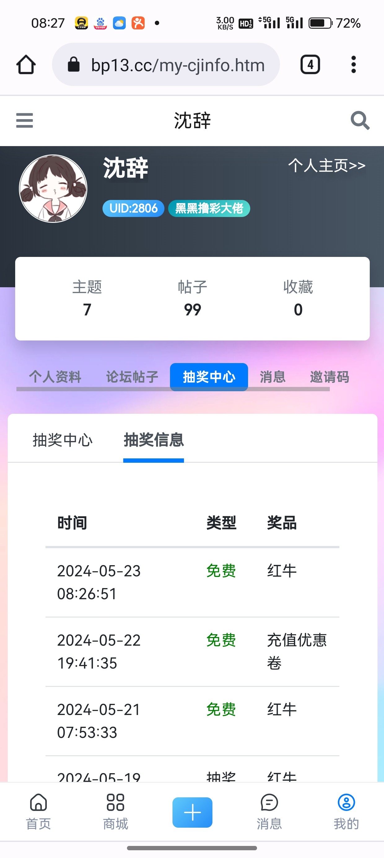 此图为抽奖兑换正确展示页面、需要有社区id+社区账户