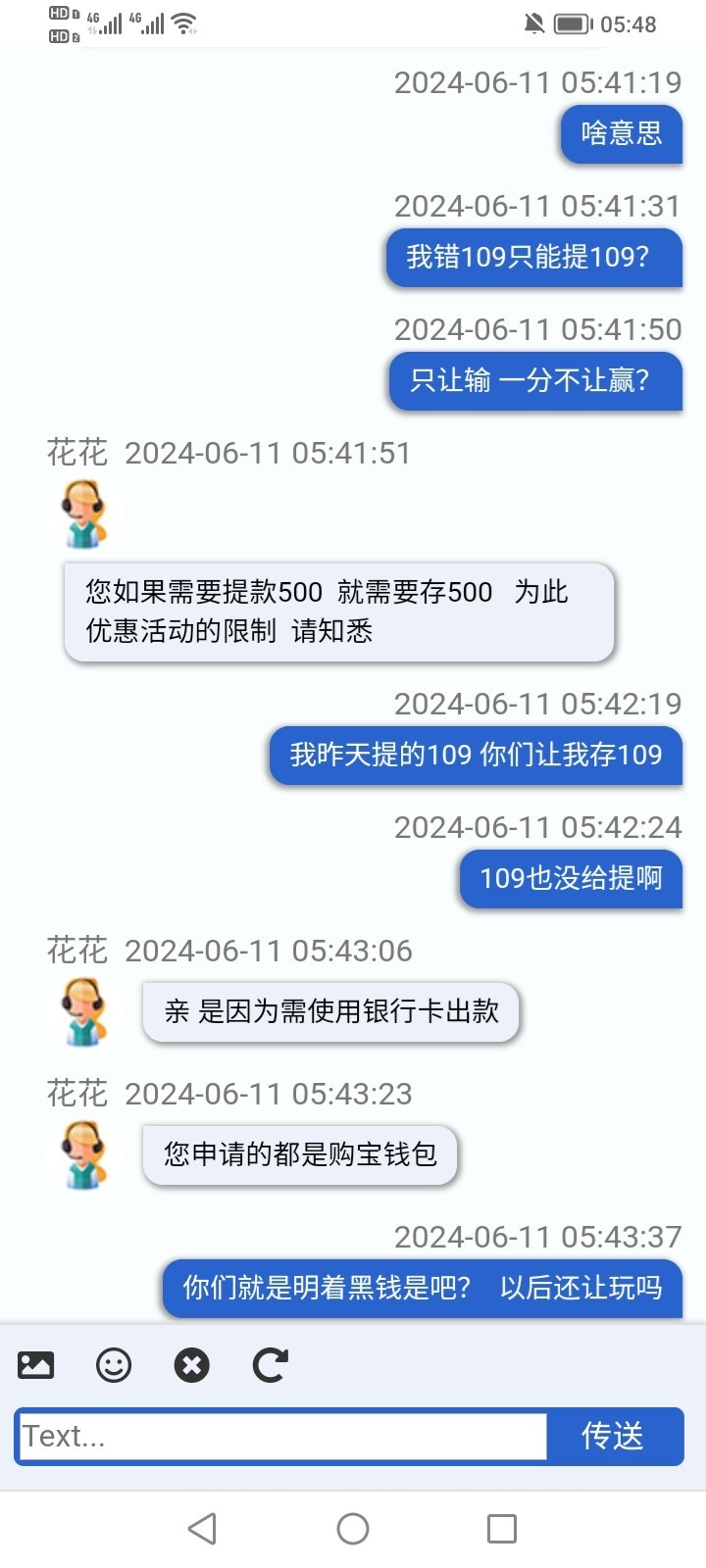 打电话送18 提款109 不让提  说让充109才能提  充值以后还是不让提 又让提供手持身份证 提供了也不让提又说只能提银行卡   银行卡最低500提  打到500也不让提  说我存款109只能提109 畜牲  合着我只能输一分不能赢