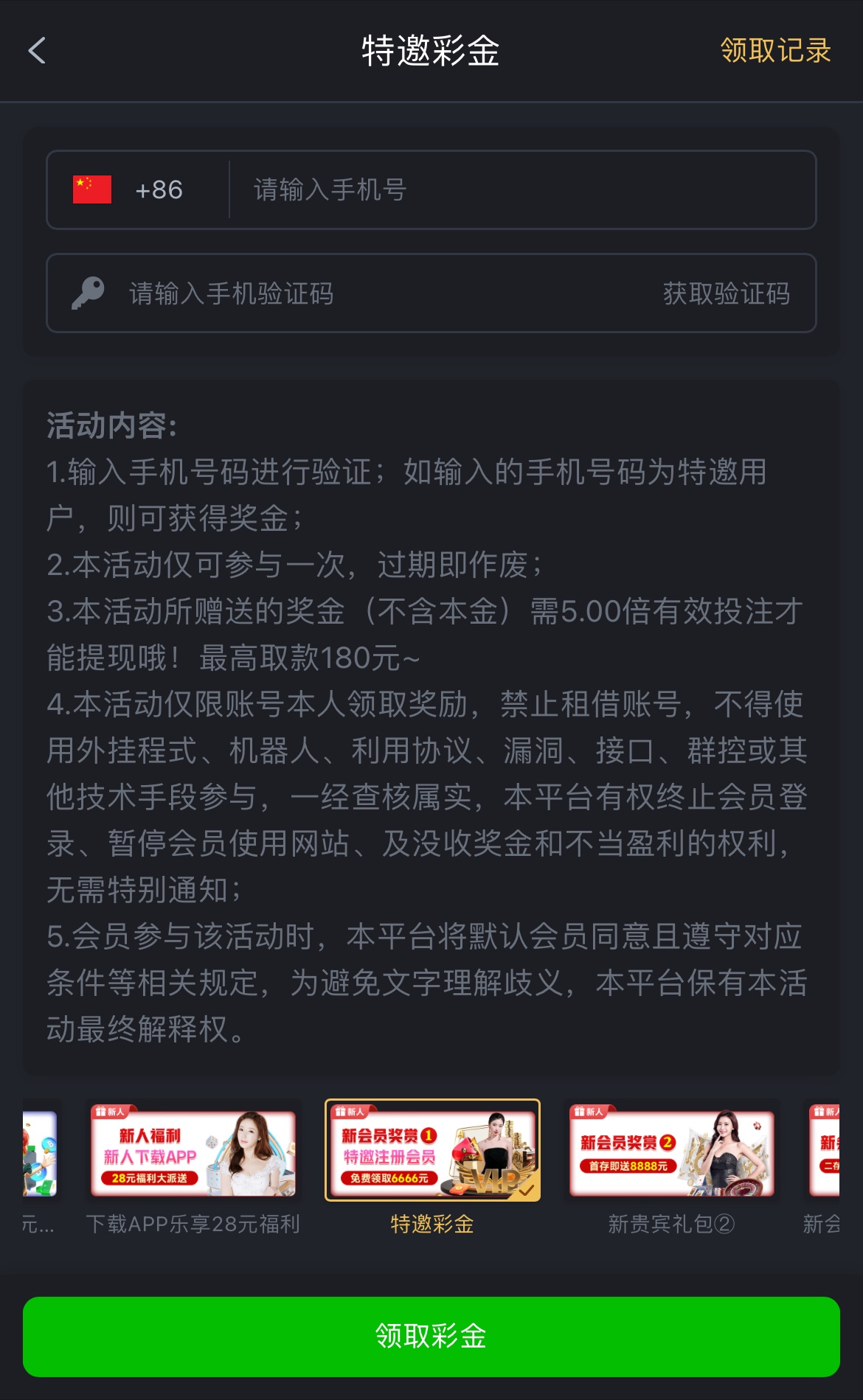 老白菜了一个月前发过一次,没玩过的兄弟去试试,特邀碰瓷,注册完善资料,优惠自助申请,5倍流水,最高提180