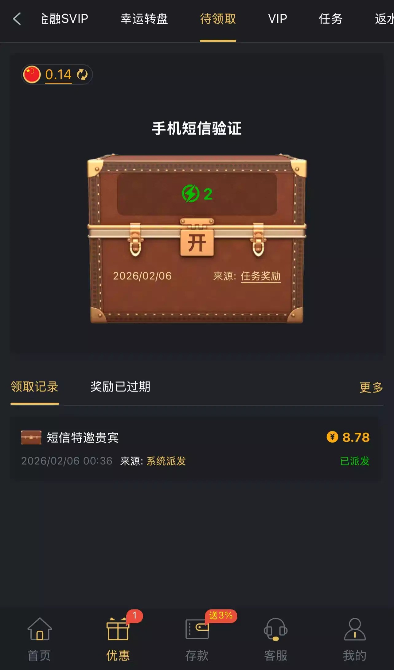 还没碰瓷过这个平台的兄弟们可以去试试,注册好在优惠里找到特邀自助领取彩金