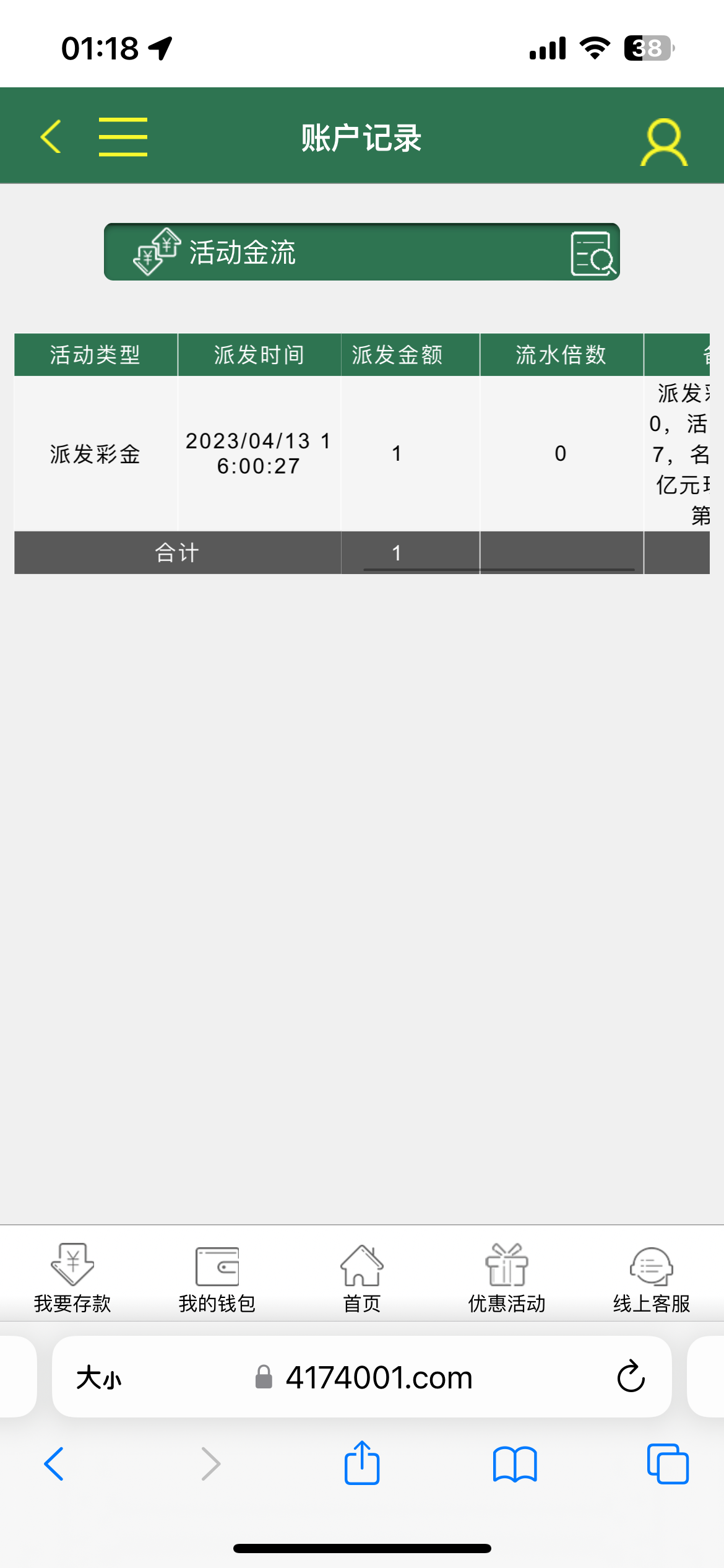 417 一块钱活动金上1300