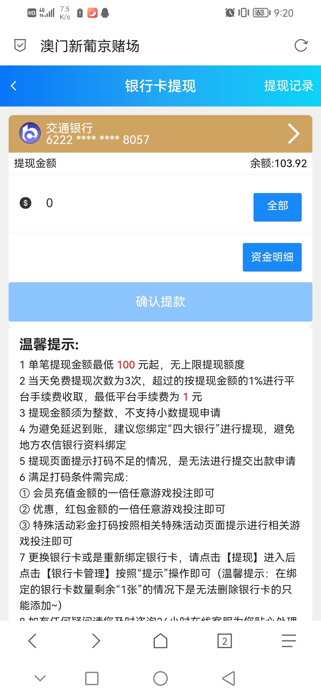 提103等了40多分钟,退回来了,只能提100