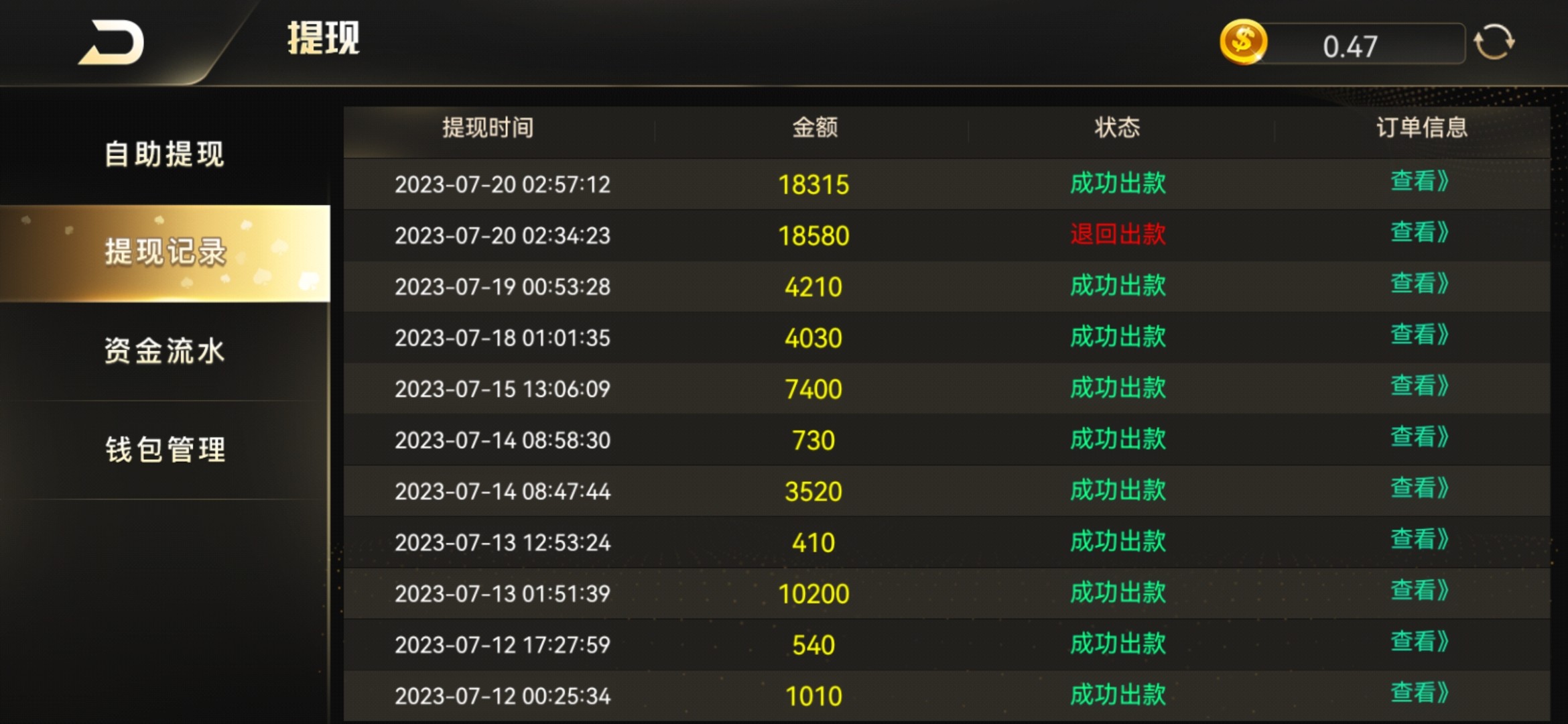 提现都正常到账