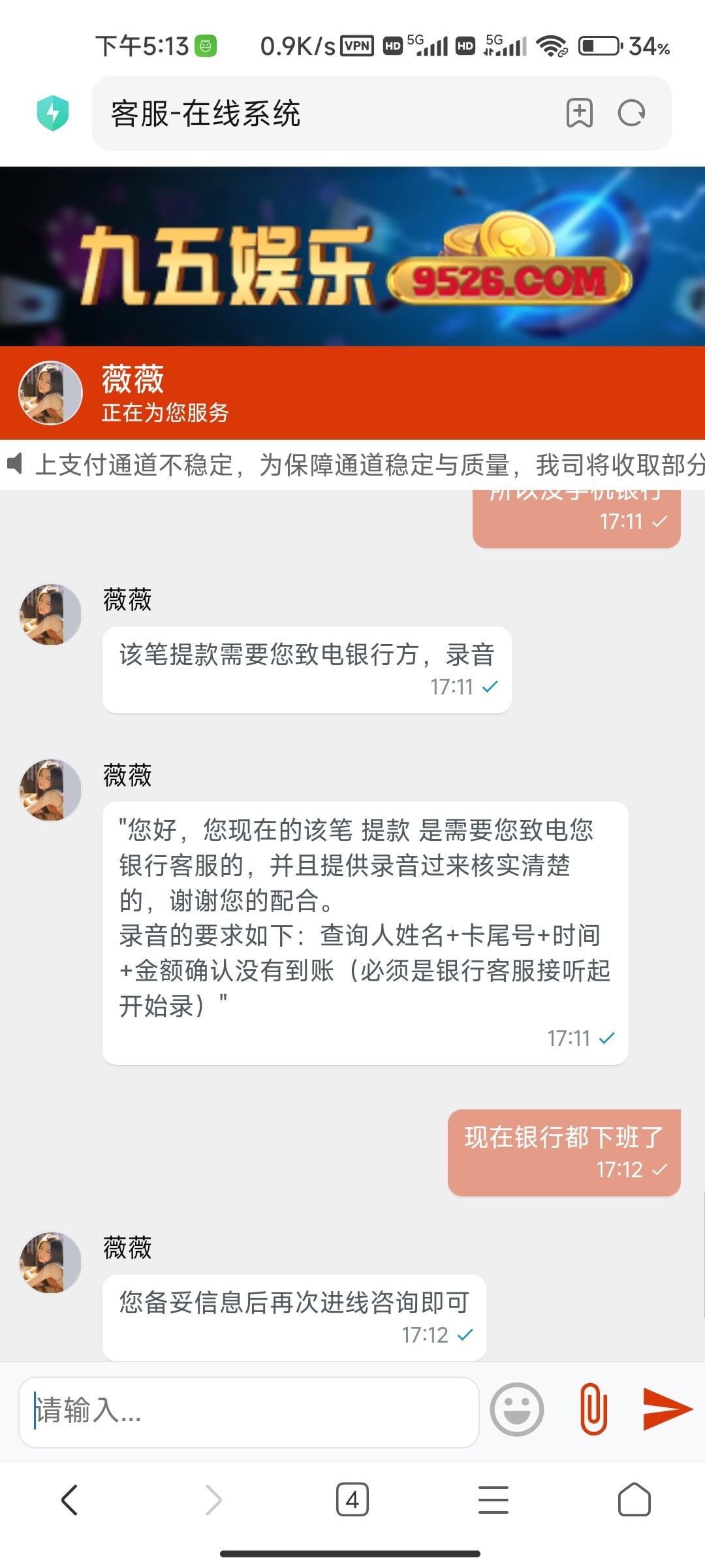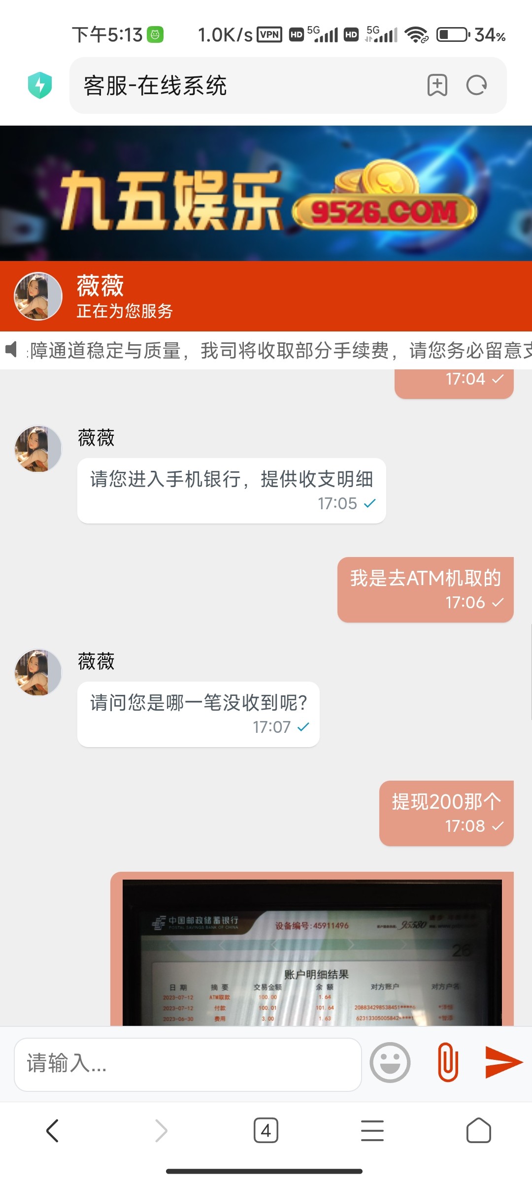签到领的彩金打上100提现说要充值100打一倍流水打够了提现了200三点开始提现到五点显示打款成功切没有收到 空汇 联系客服要和银行客服打电话什么的!