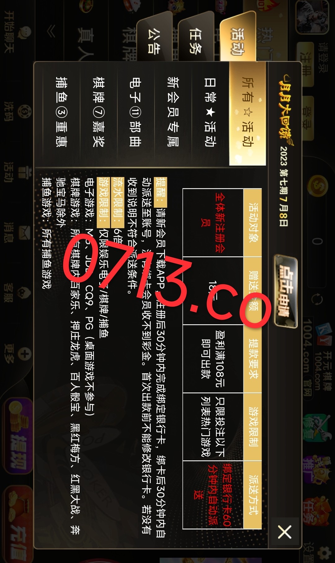 新用户注册绑卡一小时内自动赠送18元彩金没送就是不符合游戏和提款限制自行查看优惠