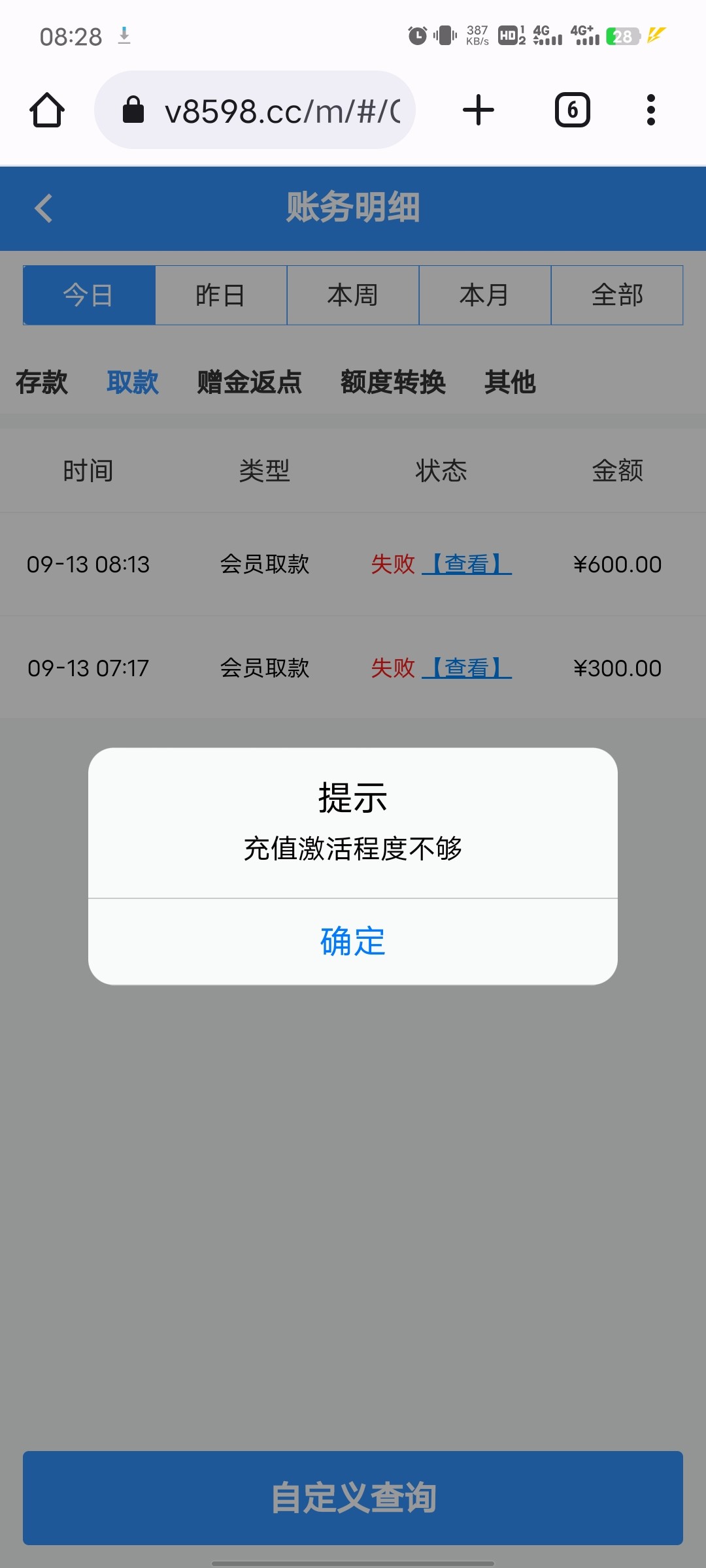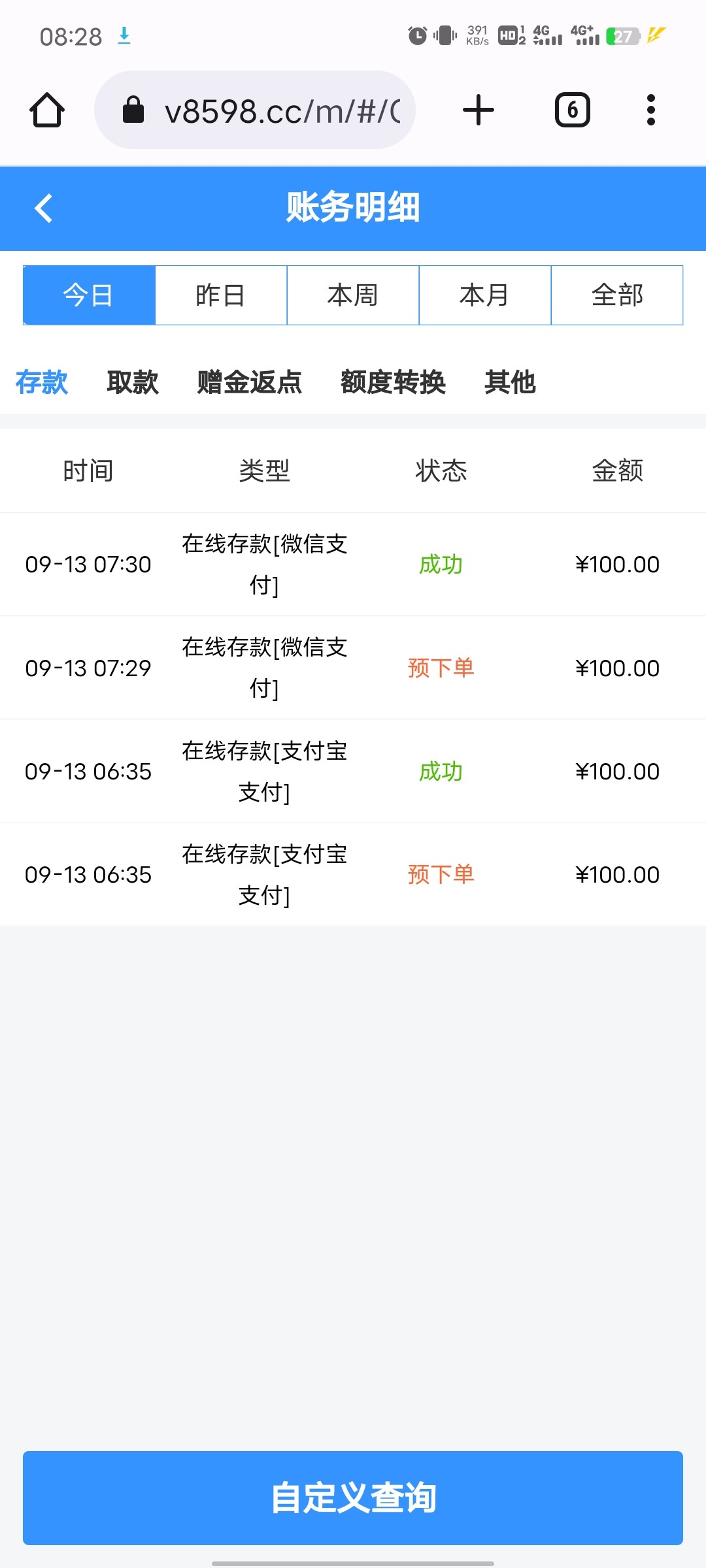 估计撸的人太多了开始黑了。我10号那天充一笔出了600