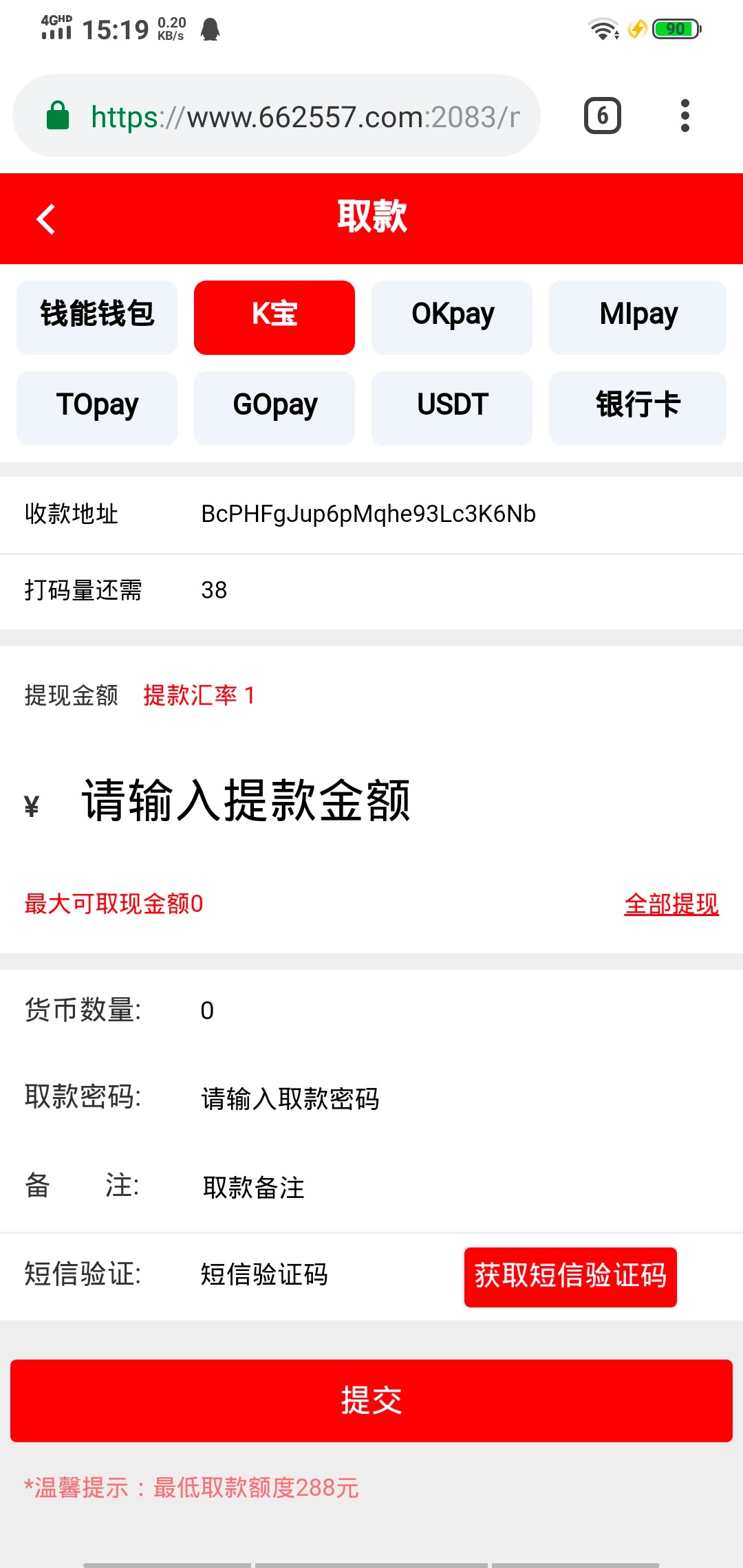 提款288,期待到账