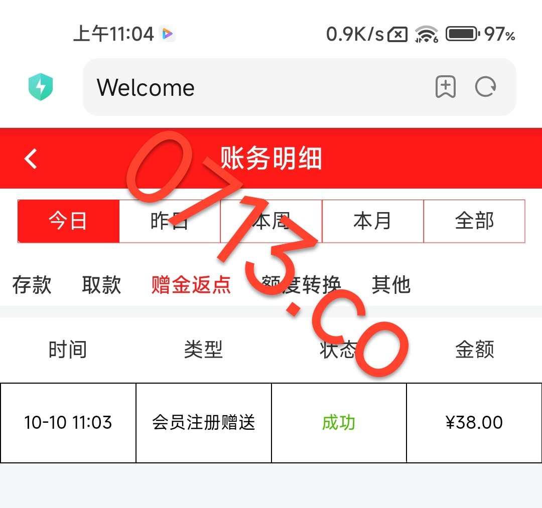 到账了,到账了,前面没有充值,后面冲了50直接出款了,