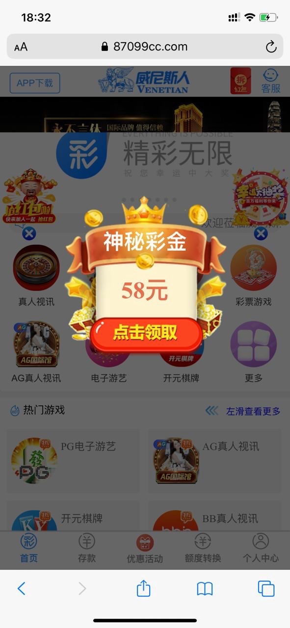 这是电话回馈的  58  神秘彩金 我之前充了100今天来电话送我58