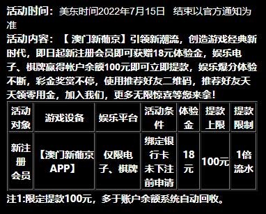 新用户注册送18  限制电子棋牌 18最低100提款