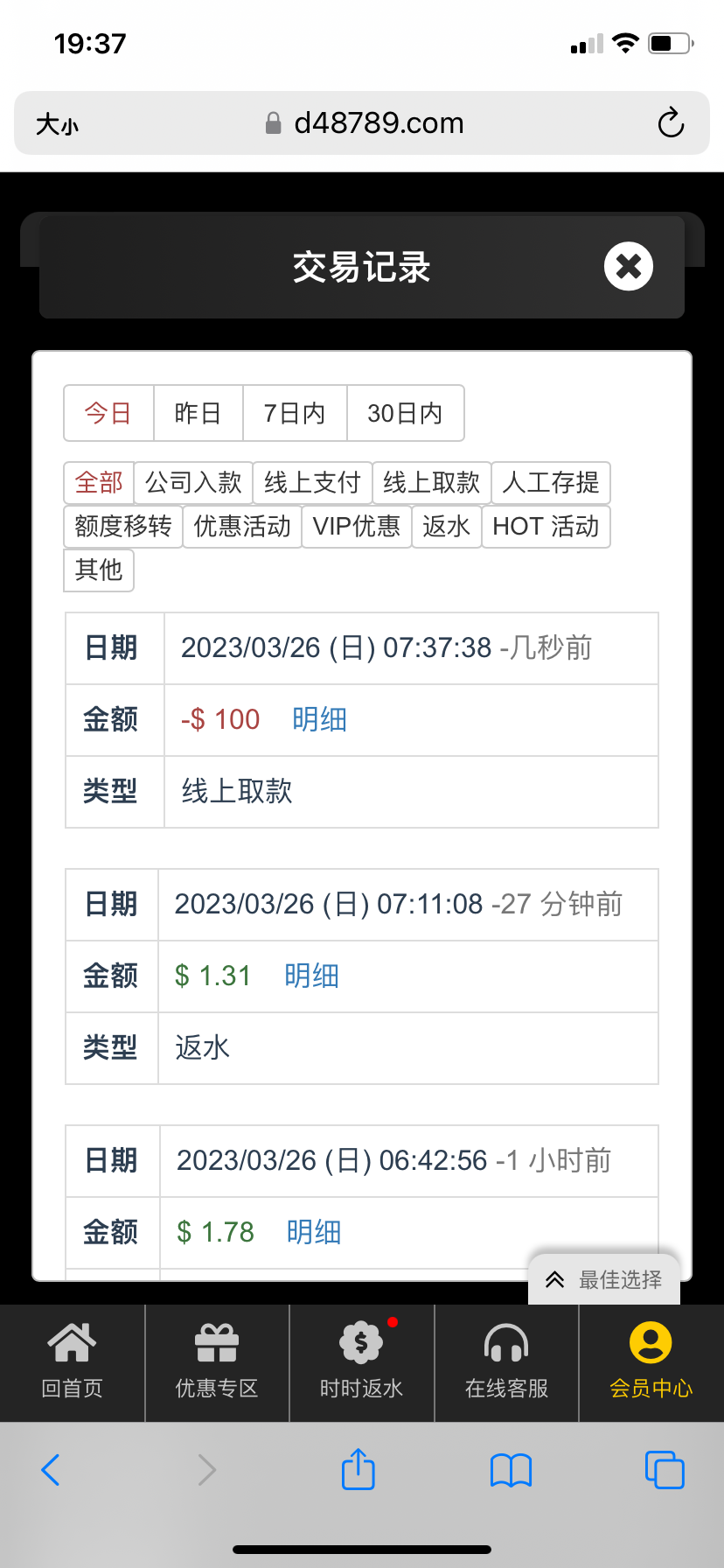 骗子   存款两次500以上才送19.。