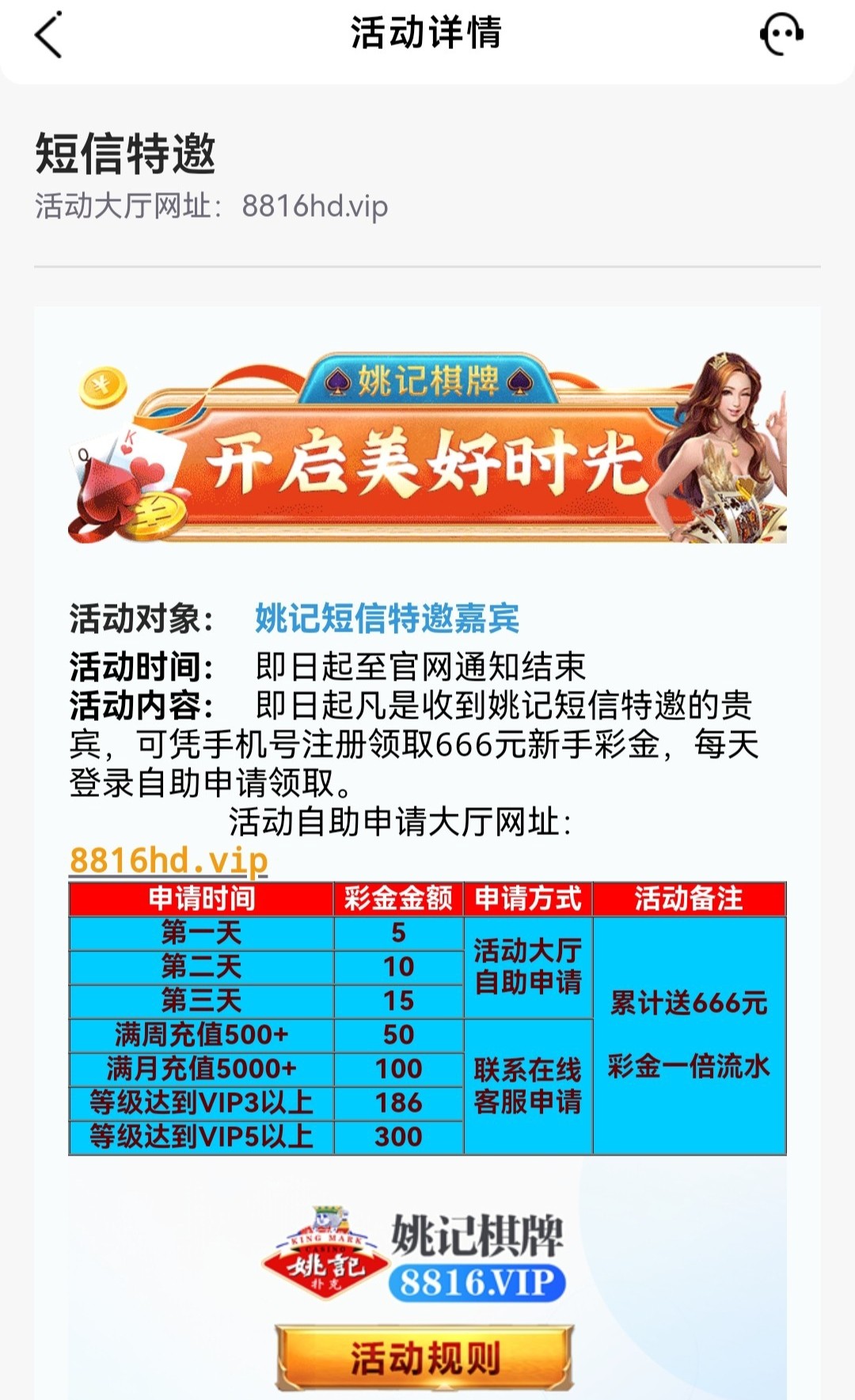 有收到短信的可以去了,姚记棋牌,第一天5,第二天10,第三天15