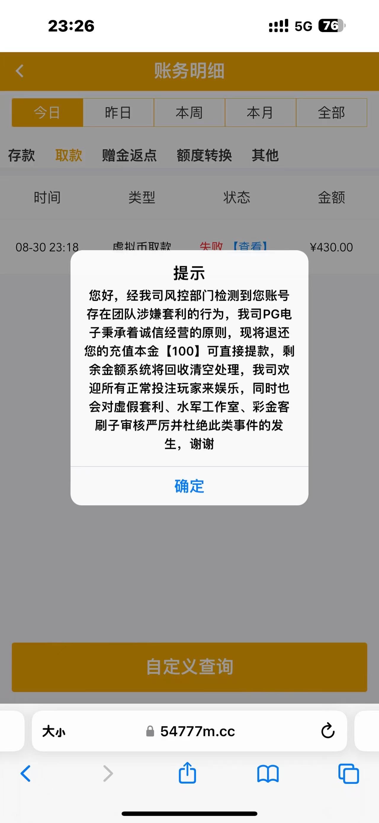 冲100出430不给