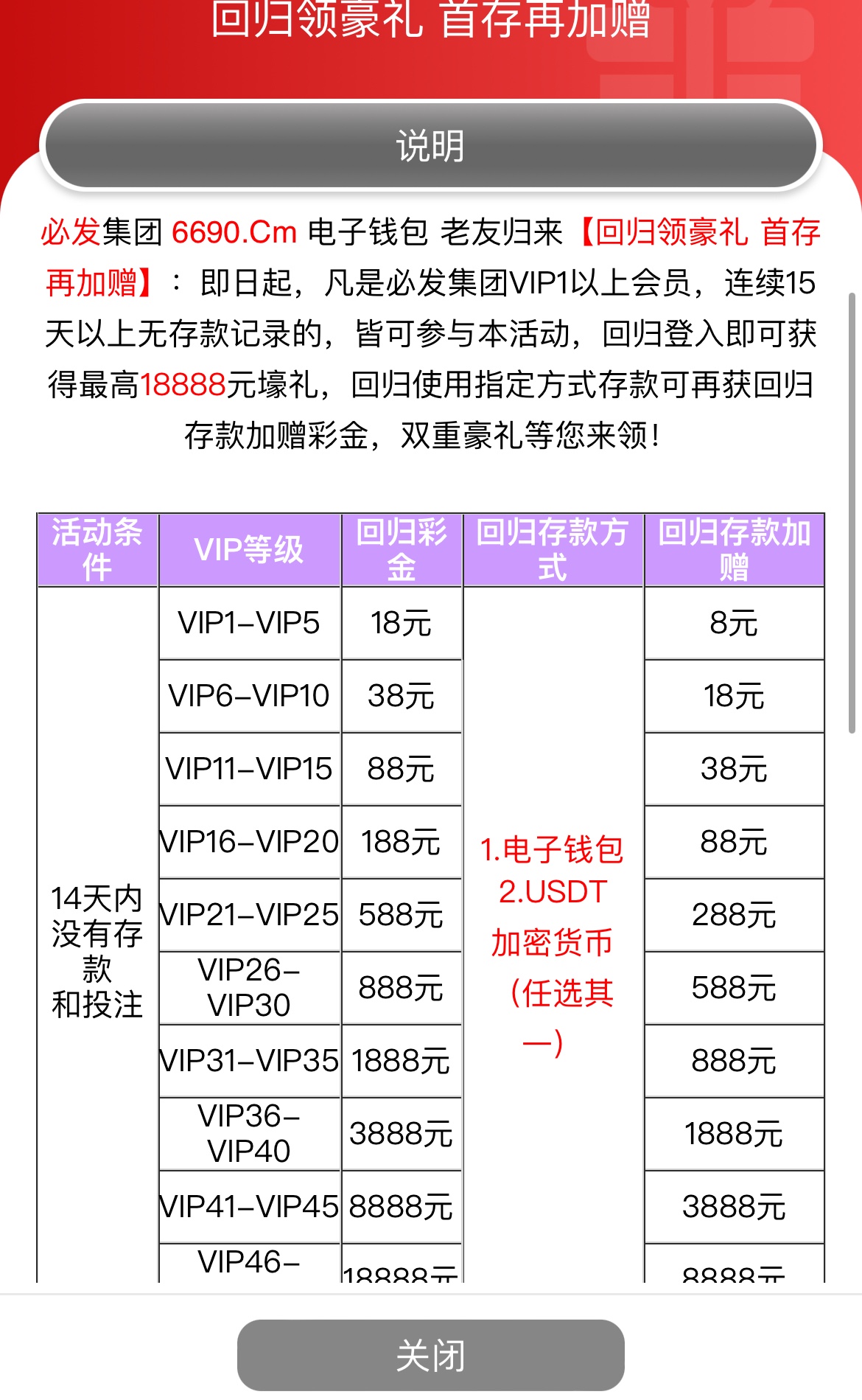 领取要求是VIP1以上,历史存款达到300+,超过15天没存款的可以去申请