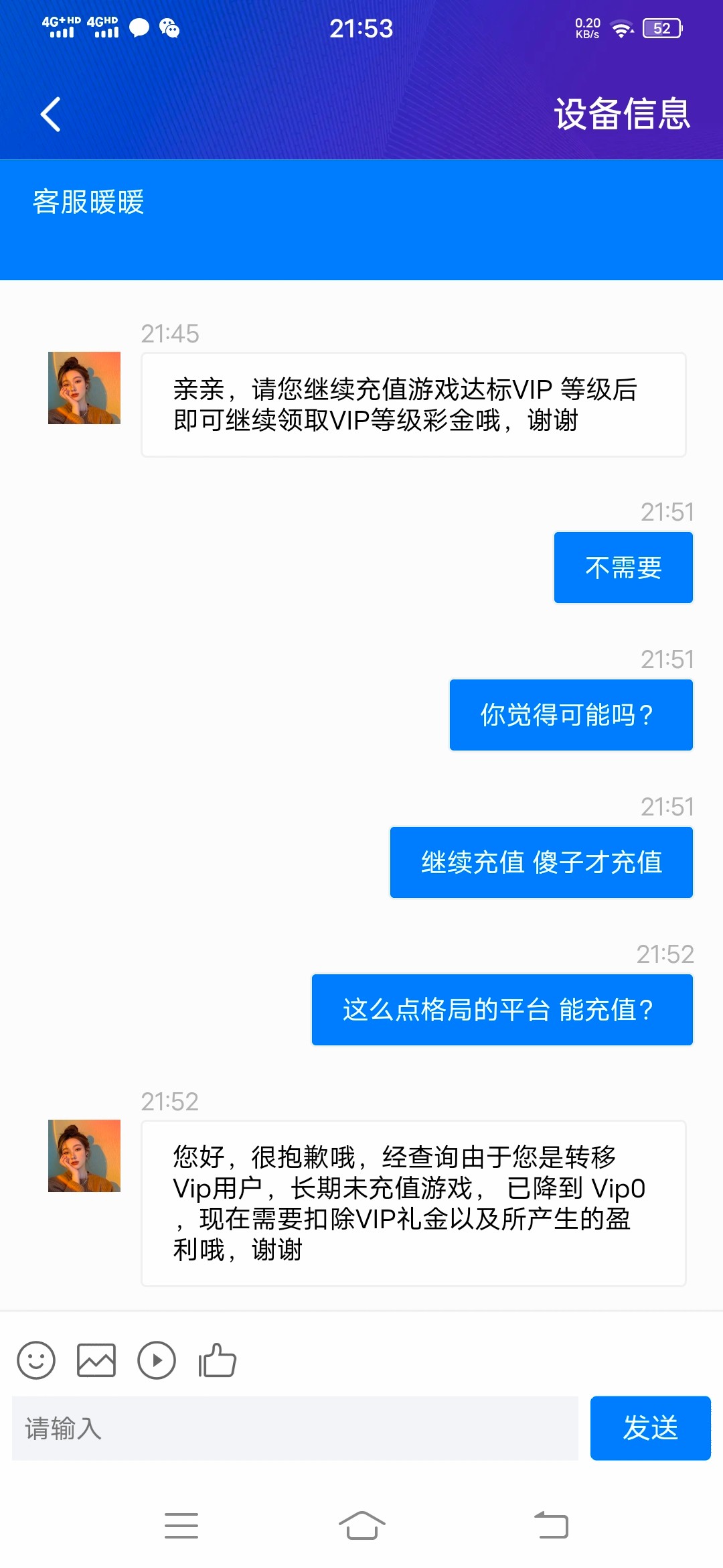 真是个沙雕,长期不玩vip会掉 现在的年轻赌狗怎么那么傻逼的呢