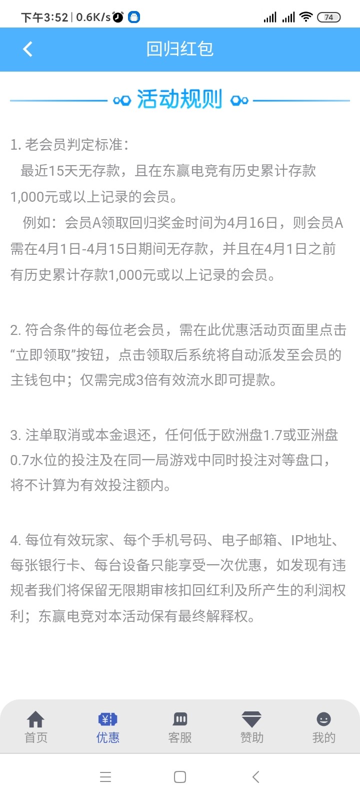 雷火把我号封了我之前注册领新人活动后面再去登