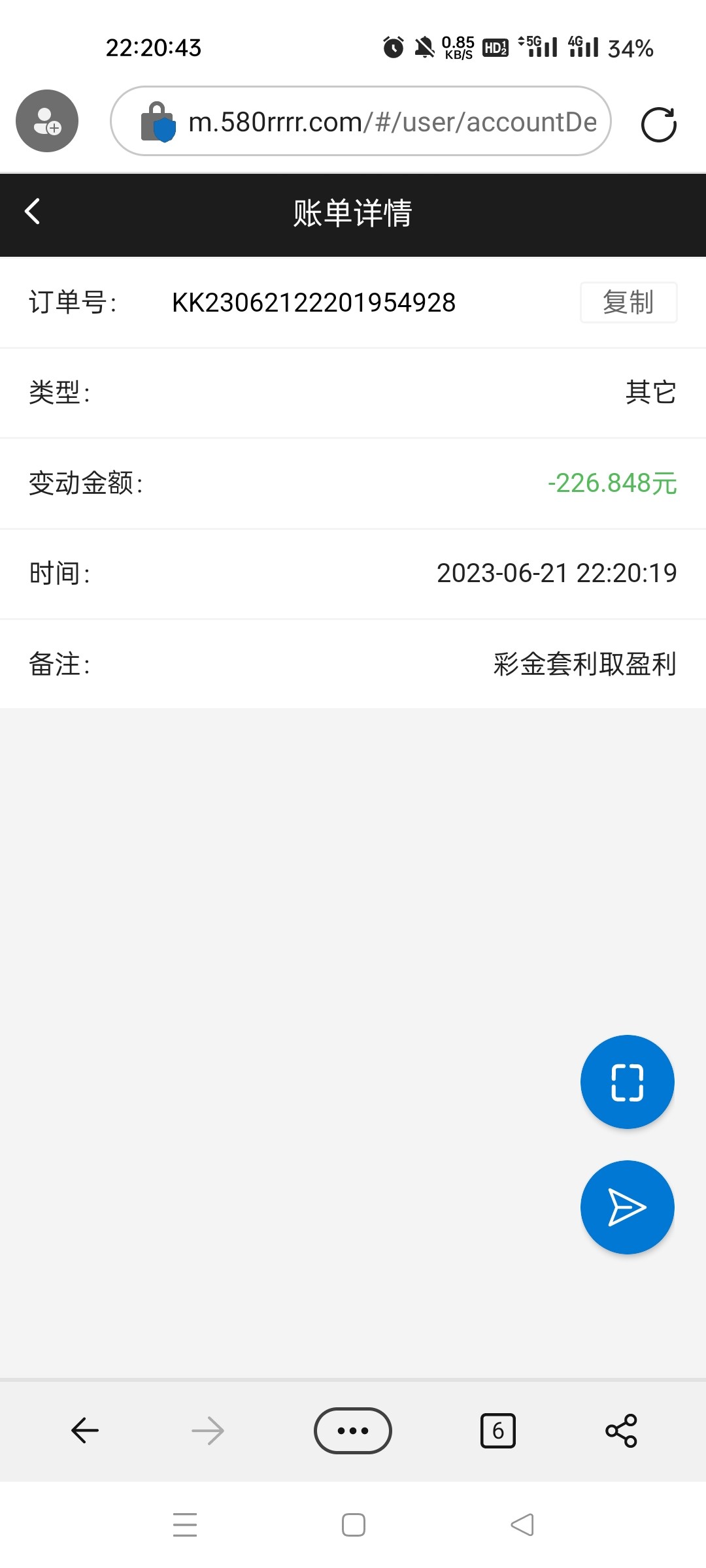 15分钟左右到账,5/6个号