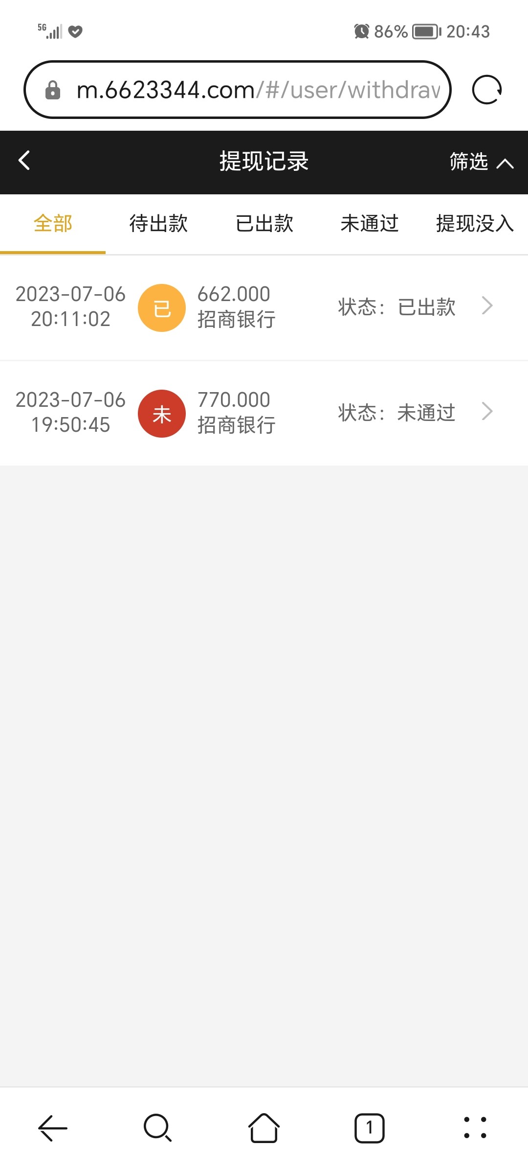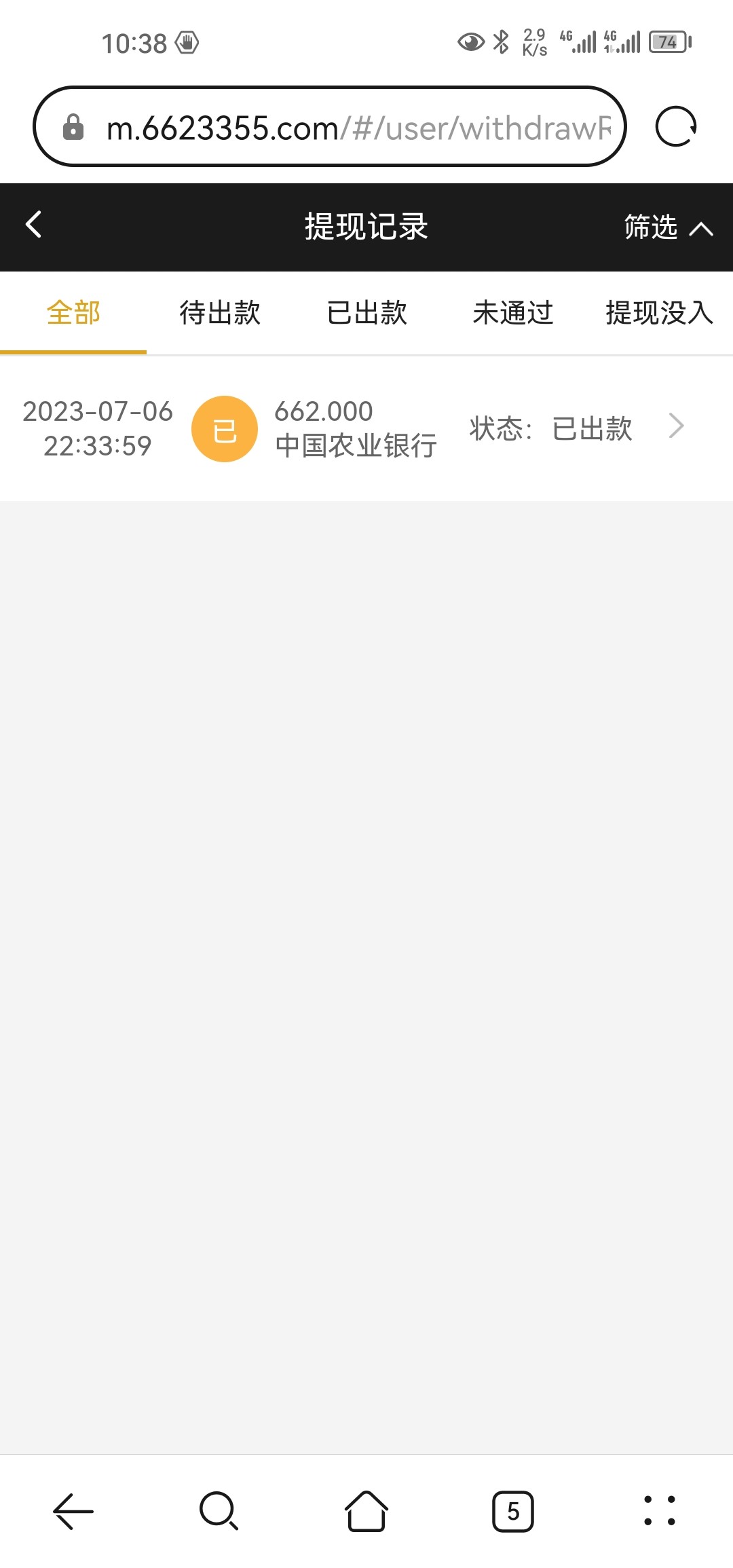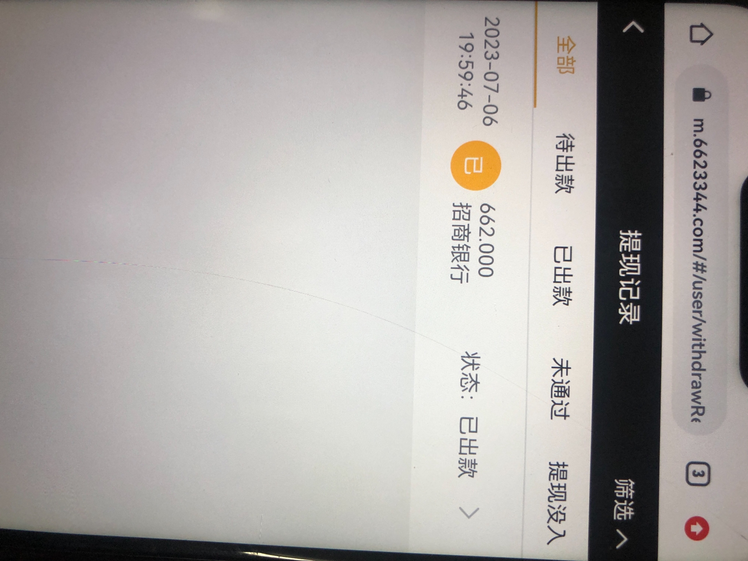 我打出来了,但是提现662显示已出款,钱没到账